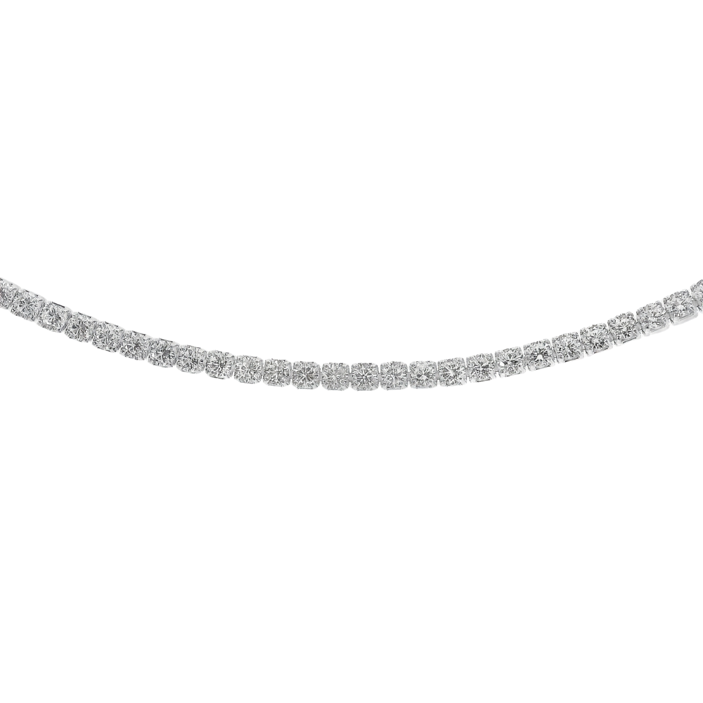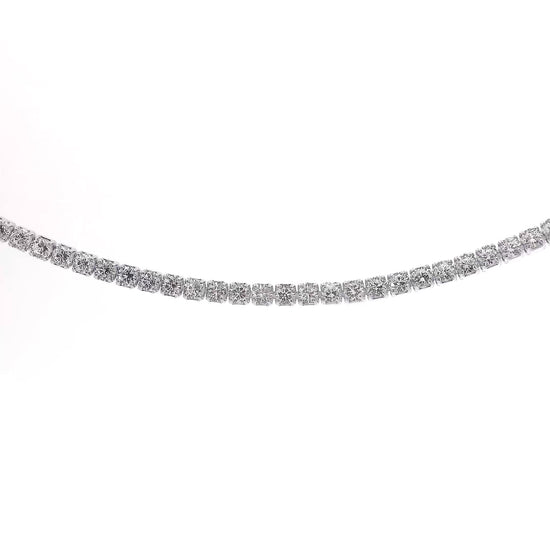 Girocollo tennis regolabile in argento placcato oro bianco con pietre in moissanite bianca trasparente.